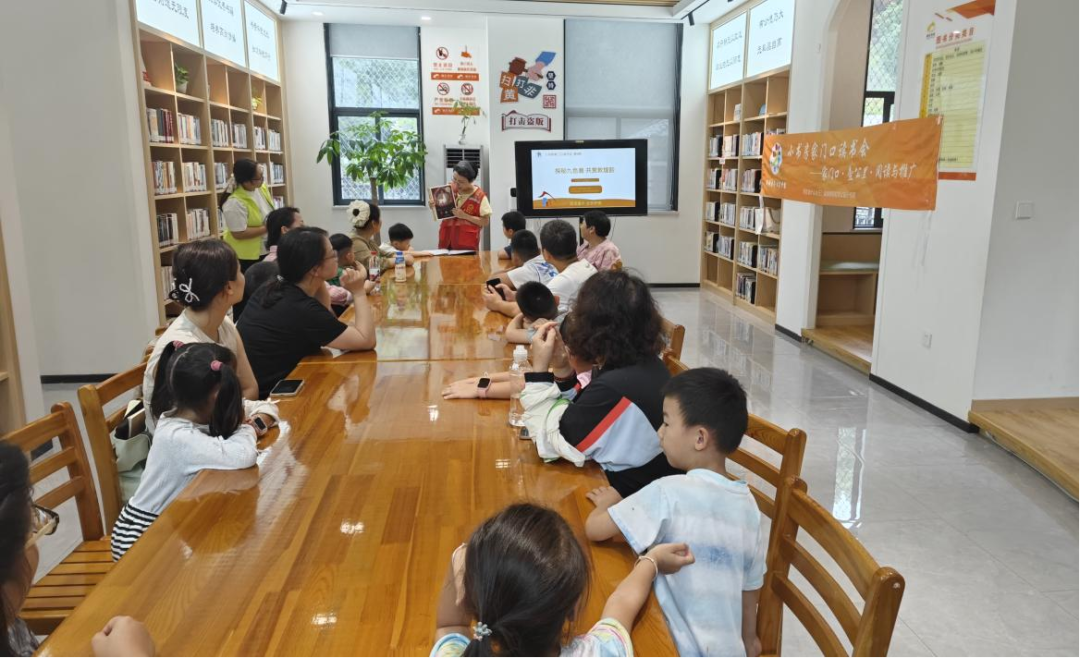 活动伊始,鲁颖超便以趣味科普拉近亲子家庭与敦煌的距离,她向孩子们生动揭秘:“莫高窟的壁画连起来能铺满好几个足球场!” 大屏幕上,敦煌石窟的壮阔图景缓缓展开,孩子们纷纷凑上小脑袋,眼中满是对千年文明的好奇。随后,改编自敦煌壁画《鹿王本生》的《九色鹿》绘本故事温情开讲,从九色鹿救人于危难,到遭遇背叛仍坚守善意,再到最终善有善报,鲁颖超娓娓道来,孩子们听得全神贯注。故事落幕,孩子们踊跃表达对九色鹿勇敢品质的敬佩,家长们则结合故事延伸,畅谈诚信教育对孩子价值观培养的重要意义,让社科普及在交流中更添温度。