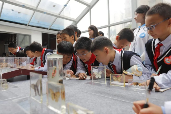 动物标本区的福寿螺、昆虫标本,植物标本区的蕨类、裸子植物等展示,以及用花瓣、蝴蝶标本制作的创意画,能通过视觉冲击激发公众兴趣——孩子们一边观看一边记录,学生们发出“太漂亮、太神奇”的赞叹,正是这种兴趣驱动的体现。