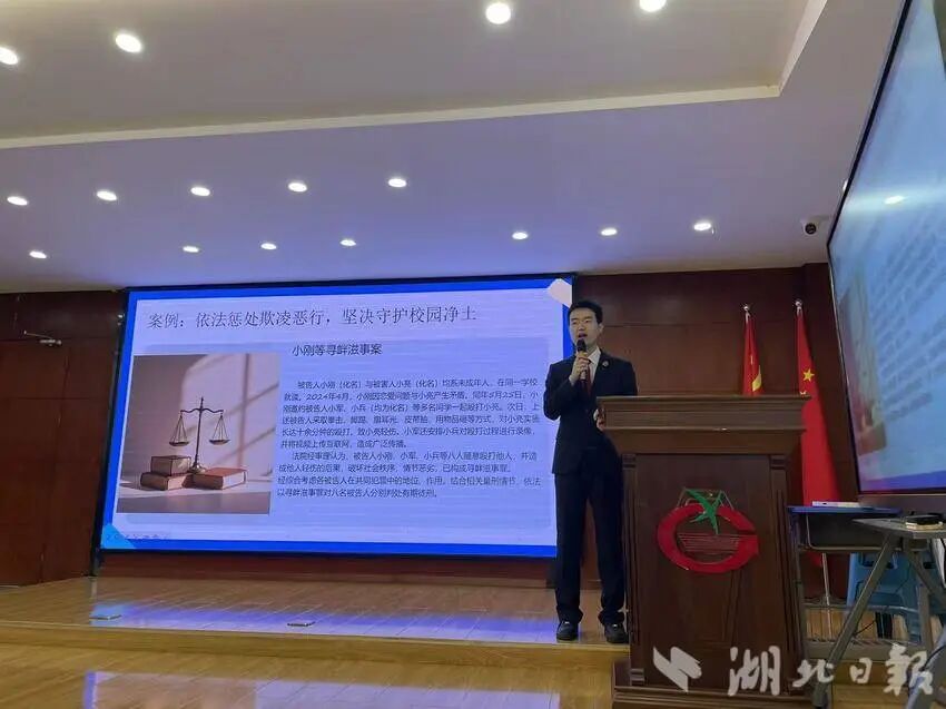 校园欺凌是青少年成长路上的 “绊脚石”,为帮孩子们认清欺凌、学会自保,近日,黄石港区人民法院法官助理、广场路小学法治副校长黄映,带着 “拒绝校园欺凌,守护少年的你” 的主题,为全校师生带来了一场既接地气又有深度的科普宣讲,为孩子们的成长筑牢一道 “反欺凌” 的安全屏障。