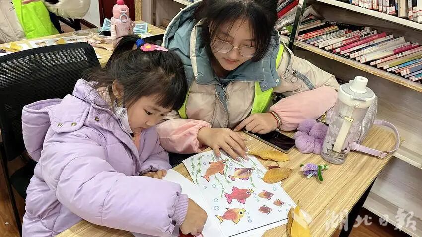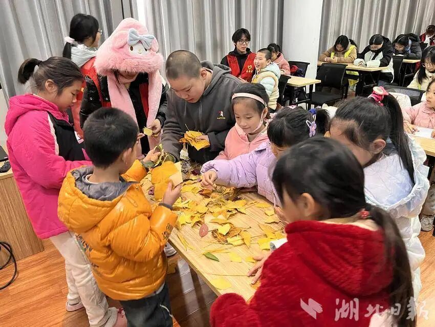活动中,湖北理工学院化工学院、湖北师范大学教育科学学院的志愿者们耐心倾听孩子的疑问,用通俗易懂的语言讲解难题,帮孩子们排除学习障碍,让周末学习更高效。之后还精心设计了树叶“小动物”暖冬小屋主题活动,让孩子们在趣味科普中理解生命循环的意义,孩子们动手用落叶制作“小动物”、搭建“暖冬小屋”,现场充满欢声笑语。
