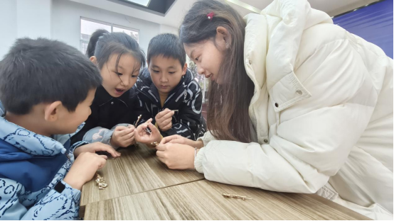 在志愿者的悉心指导下,孩子们化身 “小小非遗传承人”,指尖翻飞间,普通的螺钿片逐渐蜕变成为独一无二的精美胸针,而这枚胸针更承载着社科普及的深层意义 —— 活动特别倡议孩子们将礼物送给母亲,让非遗手作成为传递亲情、表达感恩的媒介,实现了 “文化传承 + 情感培育” 的双重社科价值。