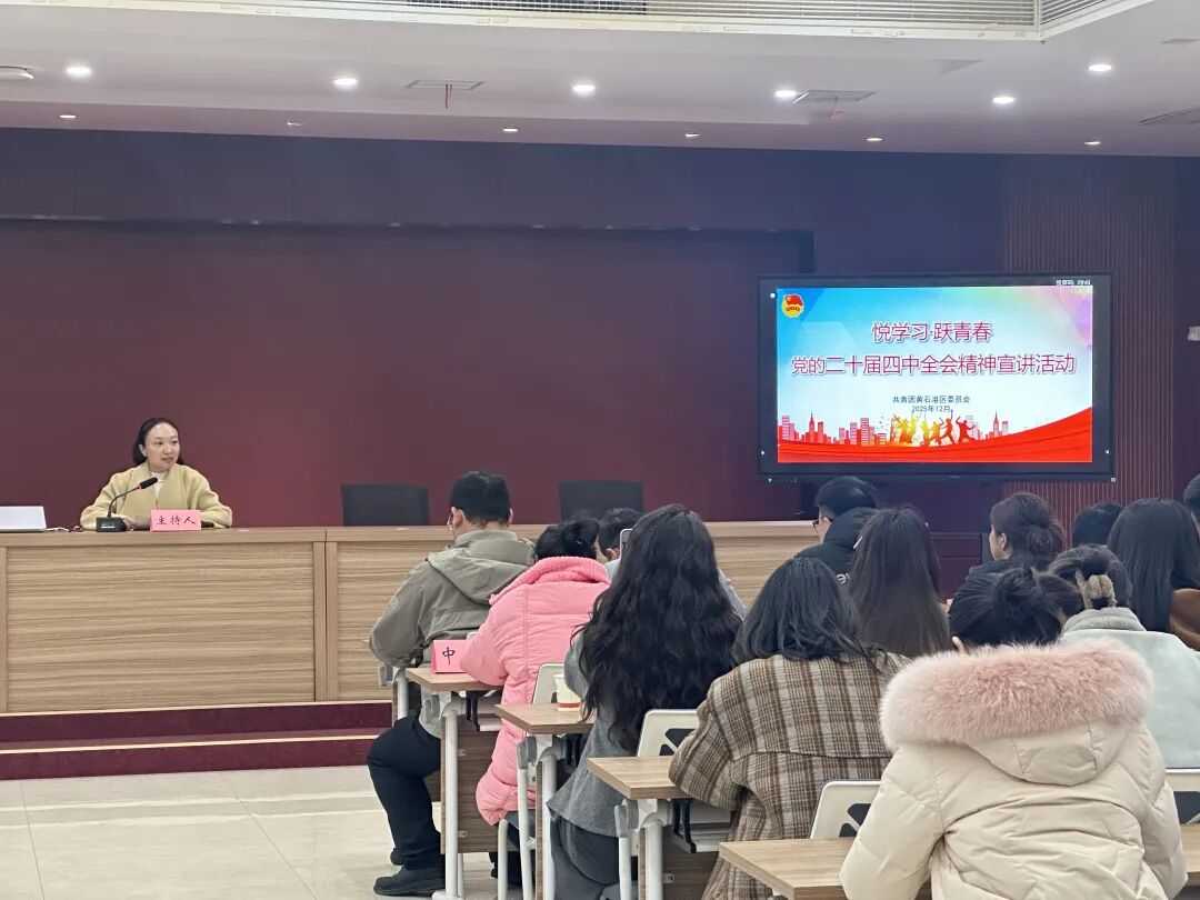 冬日的大桥社区洋溢着青春活力,12月18日下午,三楼会议室内座无虚席、掌声阵阵。由团黄石港区委牵头,港区社科联各成员单位协同打造的 “悦学习・跃青春” 党的二十届四中全会精神宣讲活动如期举行。来自不同领域的青年代表们齐聚于此,在 “青言青语” 的解读中读懂政策内涵,在思想共鸣中锚定共建方向,让理论学习成为社区联动青年的生动纽带。