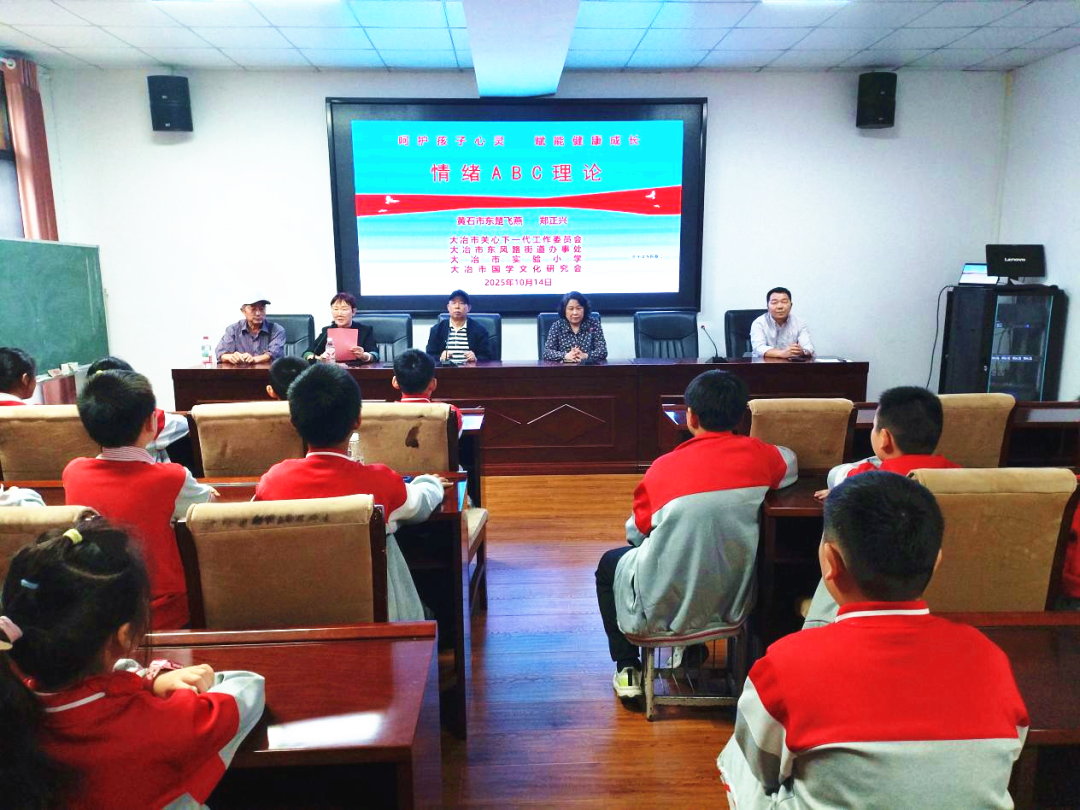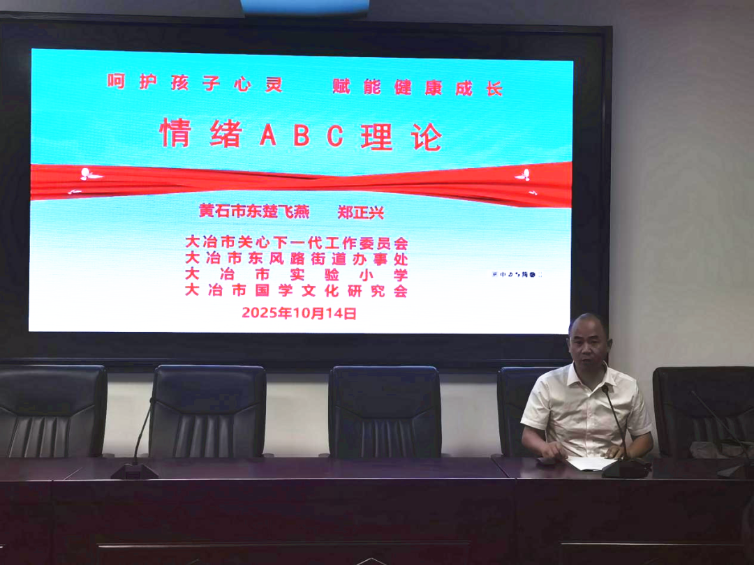 为落实社科普及工作要求,将专业心理学知识转化为青少年易懂、可用的生活技能,10 月 14 日,大冶市关心下一代工作委员会(以下简称 “市关工委”)联合东风路街道、市国学文化研究会,在大冶市实验小学共同举办 “情绪认知与自我调节” 主题心理健康教育讲座,为学生搭建起 “懂情绪、会调节、善成长” 的社科知识学习平台。