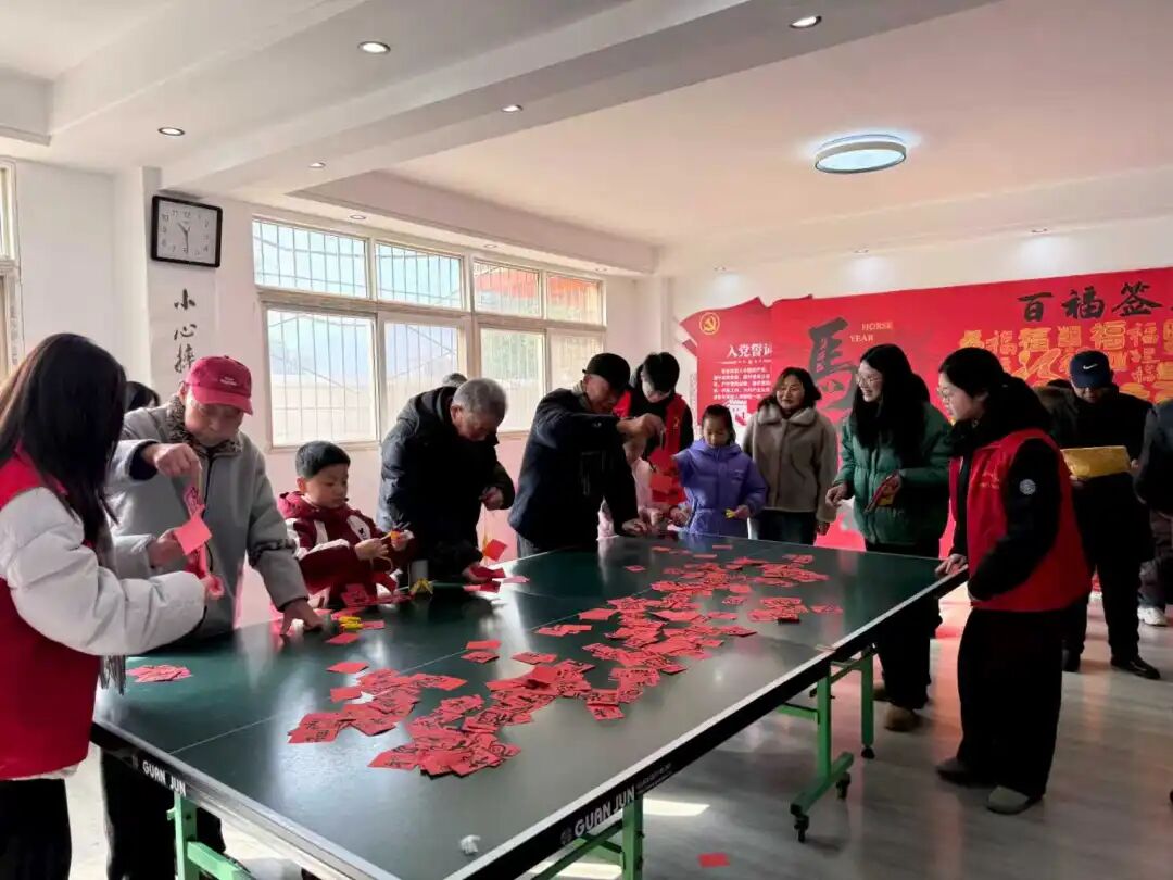 民主社区的创意百福墙成了新春打卡地,红底骏马纹样的背景墙上,居民们纷纷提笔写福、填福,孩童的纯真笔触、长者的温润字迹、志愿者的耐心协助,勾勒出社区团圆和乐的新春模样。