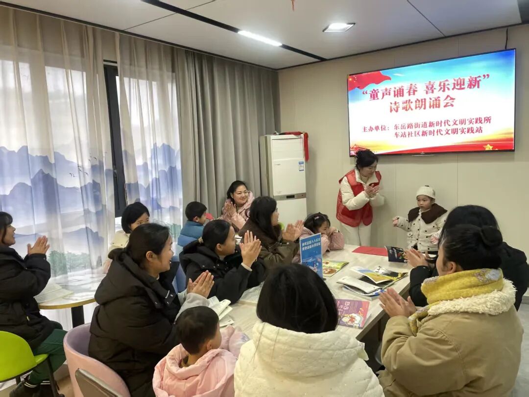 车站社区在数字书屋启幕“童声诵春 喜乐迎新”朗诵会,将社科文化与青少年成长相连,在朗朗书声中感悟中华诗词魅力、传承节庆民俗。