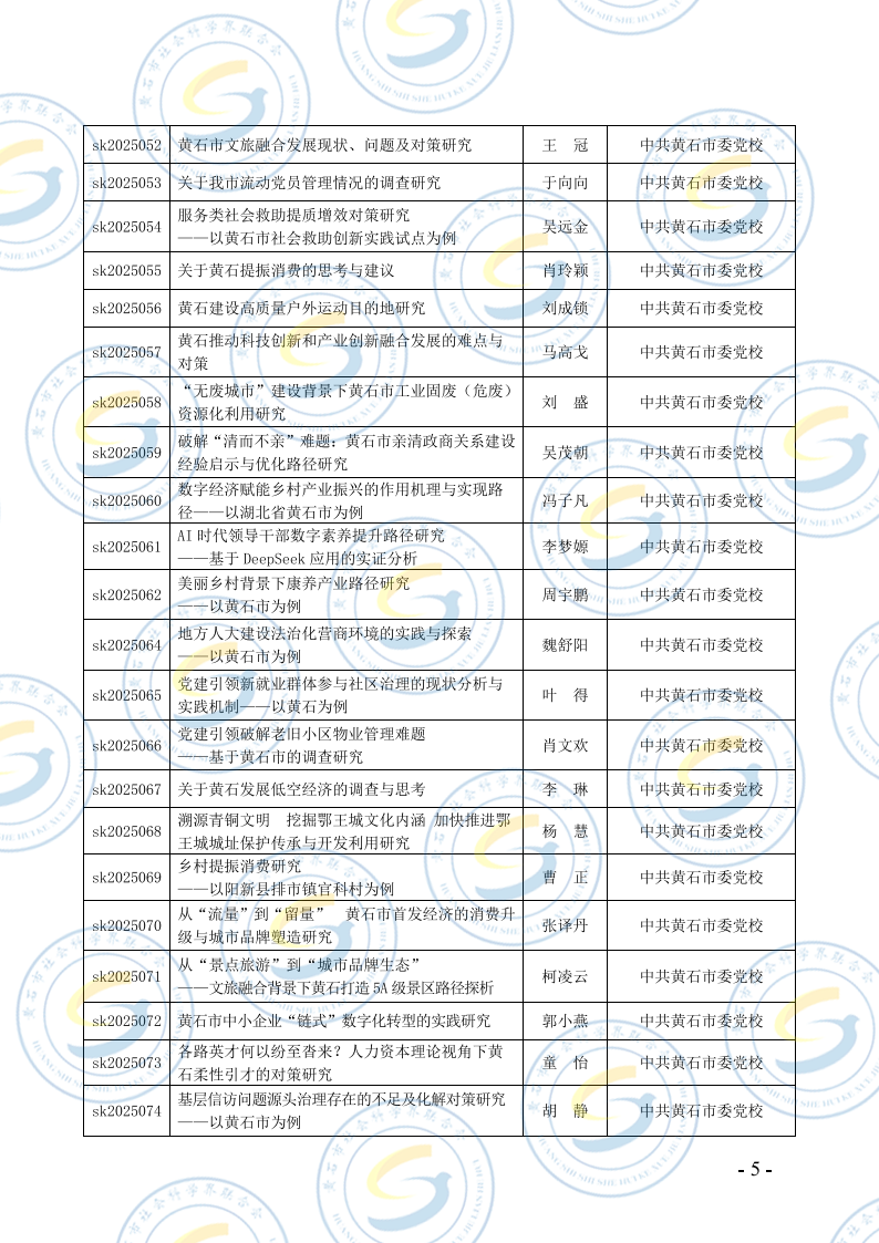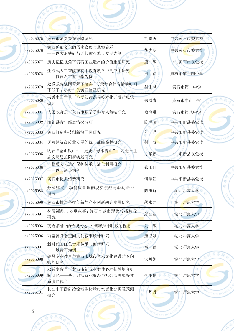 关于2025年度黄石市社会科学研究课题结项的通知