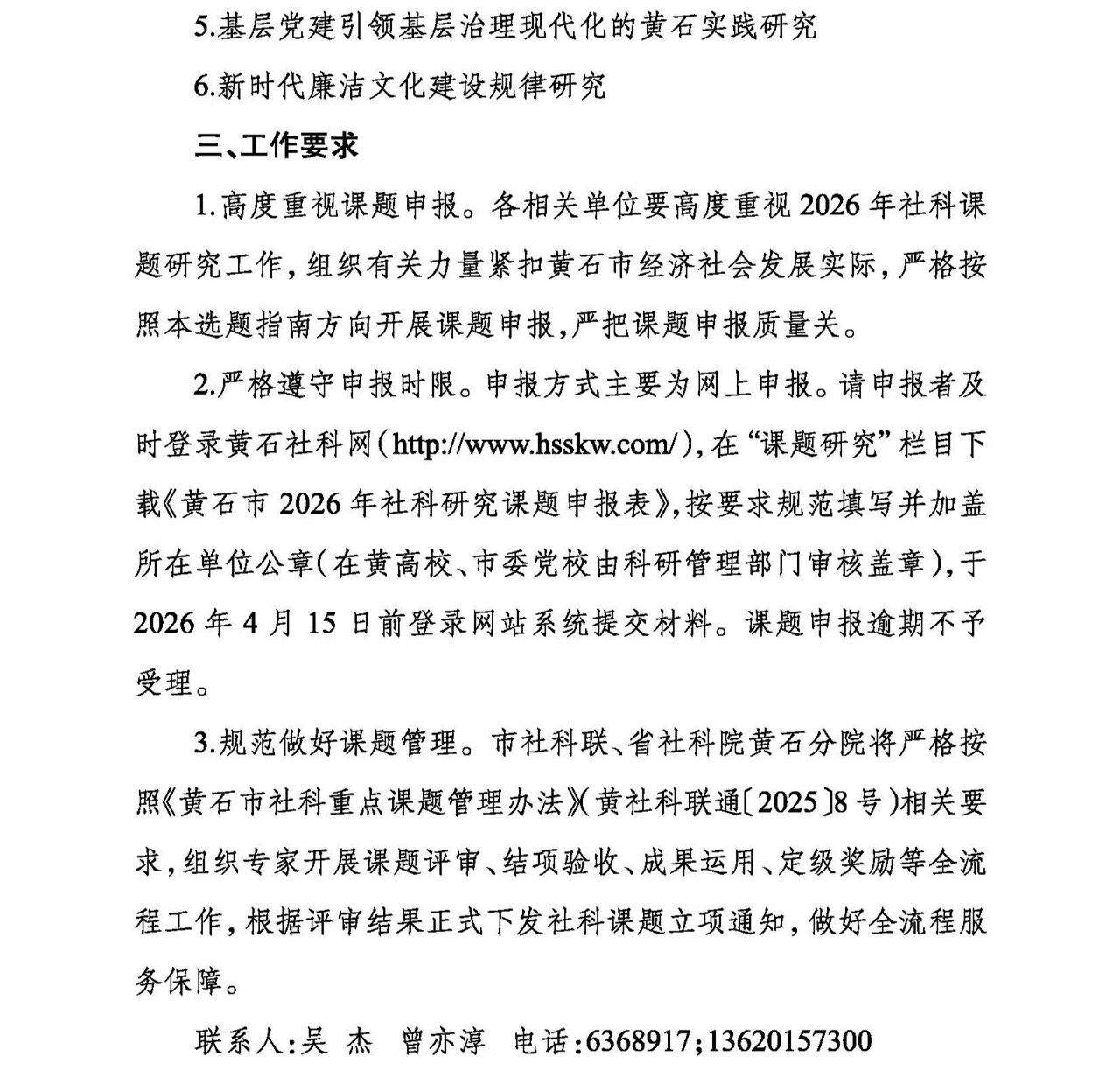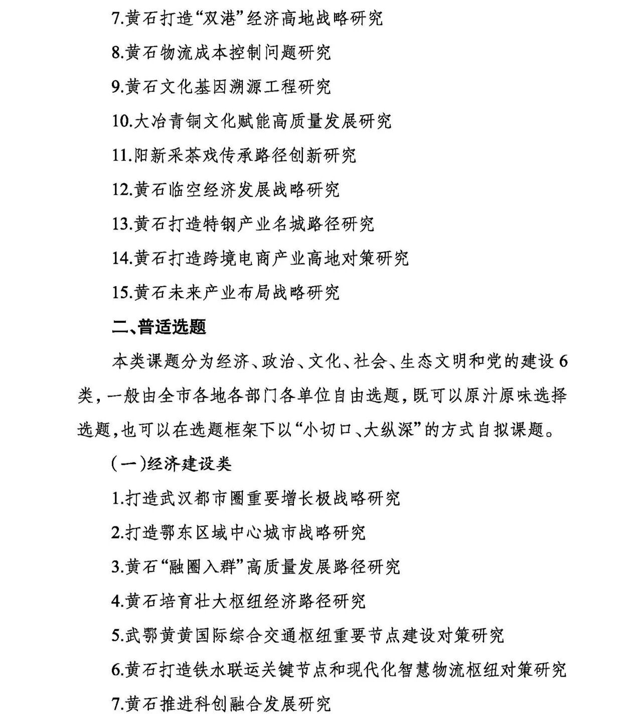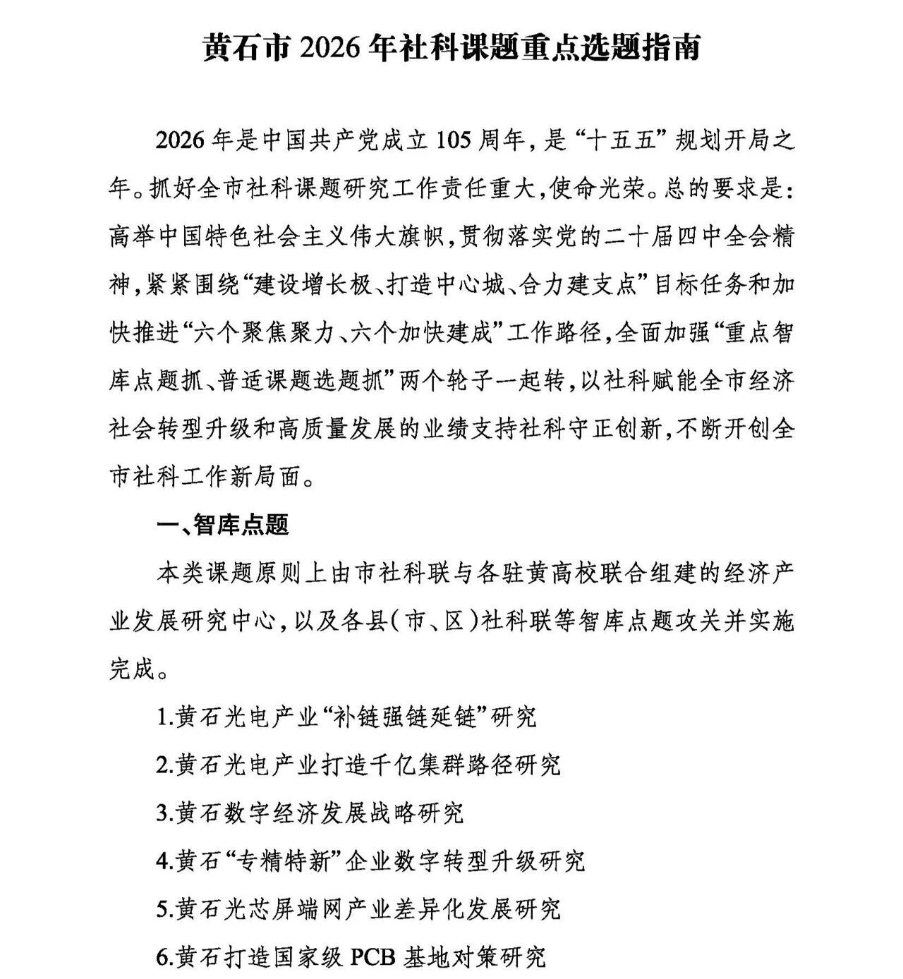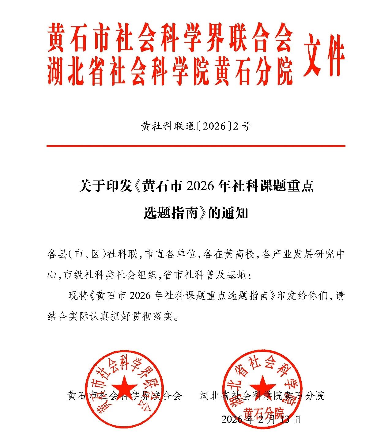 关于印发《黄石市2026年社科课题重点选题指南》的通知