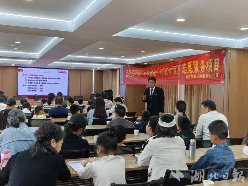 本次活动特别邀请黄石港区关工委“五老”成员余新武教授授课。宣讲中,余教授围绕“如何高效阅读、家长如何科学指导孩子阅读、家长如何通过阅读与孩子沟通”三大核心内容展开讲解,结合生动案例拆解亲子阅读的实用方法,语言通俗易懂,内容兼具专业性与实操性,为家长们搭建了系统的亲子阅读指导框架。为让家长们更直观地理解阅读实践,活动还邀请了湖北师范大学文学院的学生分享自身读书经历,从学生视角讲述阅读习惯养成、阅读方法运用的心得,为家长和孩子提供了可借鉴的真实参考。