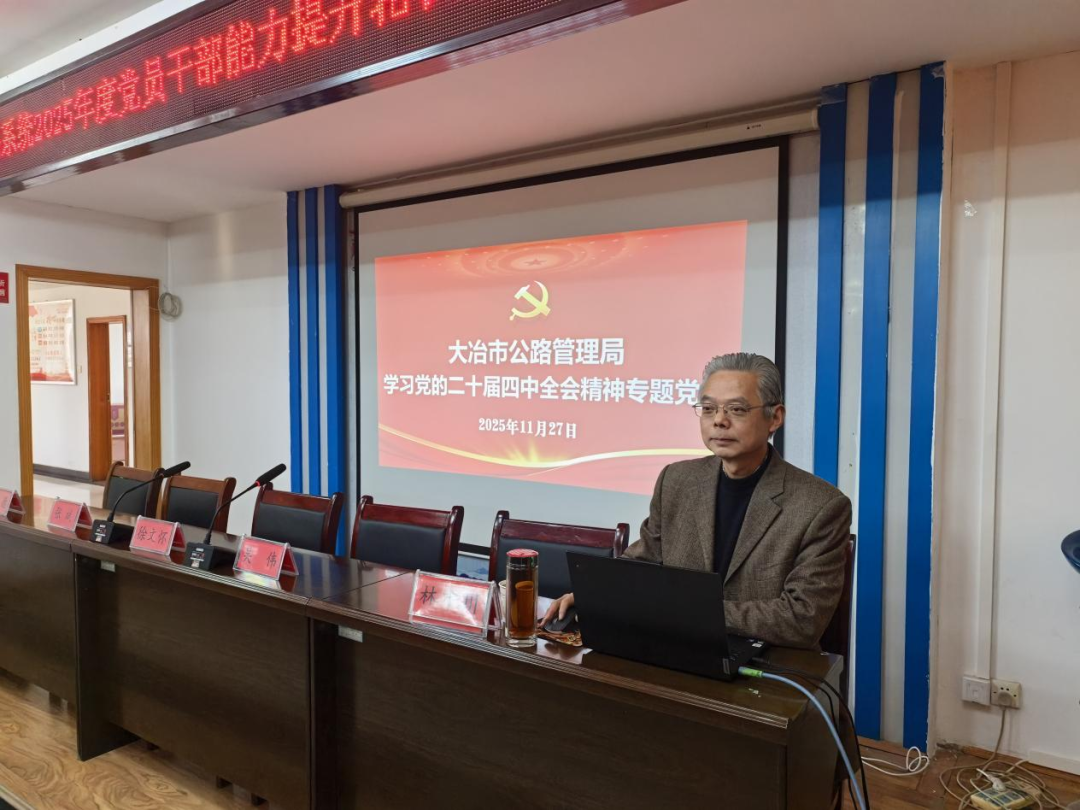 想知道公路人怎么学全会精神?11月27日上午,大冶市公路管理局给出了不一样的答案!黄石市东楚飞燕、大冶市委宣讲团成员、大冶市国学文化研究会讲师林中川受邀到场,用通俗的语言、身边的案例,把党的二十届四中全会精神拆解成 “公路人能懂、能用” 的实在内容,从国家战略讲到路段养护,让这场宣讲变成了大家眼里 “接地气、有干货” 的 “工作指南”。