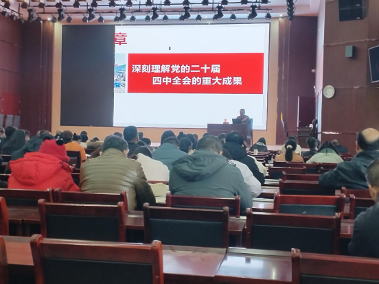 冬日的大冶六中校园,书香与暖意交融,思想与使命碰撞。12月5日上午,全体教职员工齐聚一堂,一场别开生面的党的二十届四中全会精神专题宣讲如期举行。黄石市东楚飞燕、大冶市委宣讲团成员、大冶市国学文化研究会讲师林中川受邀登台,让全会精神如春雨般浸润校园,为教育工作者们带来了一场深刻的思想洗礼与行动启迪。