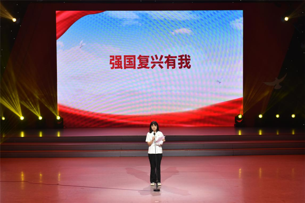 湖北师范大学学生肖有容宣读“强国复兴有我”倡议书