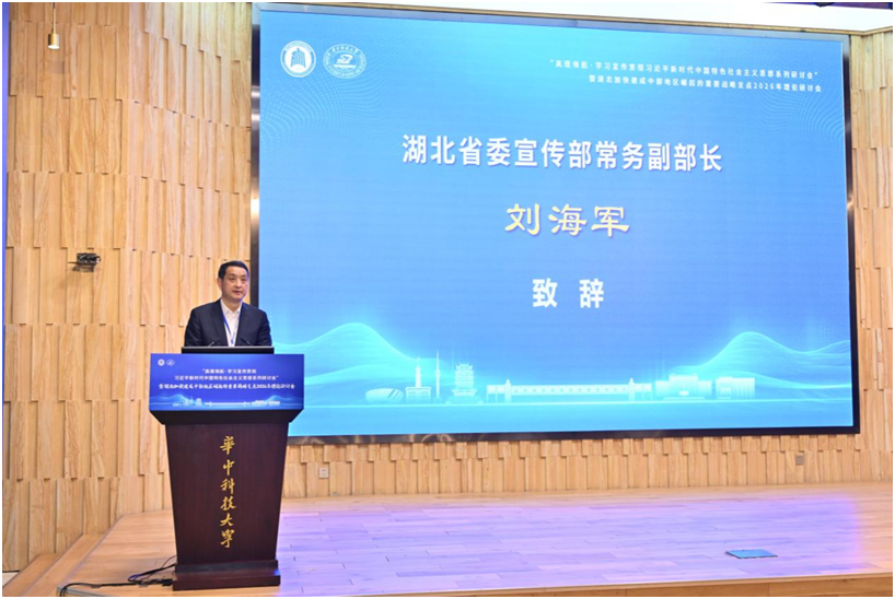 3月15日,“真理领航·学习宣传贯彻习近平新时代中国特色社会主义思想系列研讨会”暨湖北加快建成中部地区崛起的重要战略支点2026年理论研讨会在华中科技大学举行。来自中国宏观经济研究院、中国人民大学、武汉大学等高校和科研单位的专家学者齐聚一堂,围绕如何将湖北的科教优势转化为产业胜势、重塑区域发展新格局展开深入研讨,为湖北高质量发展贡献“硬核”智力支持。华中科技大学党委书记刘波、湖北省委宣传部常务副部长刘海军出席会议并致辞,湖北省社科联主席赵凌云教授出席会议并作主旨发言,湖北省社科联党组书记、常务副主席刘爱国出席会议。