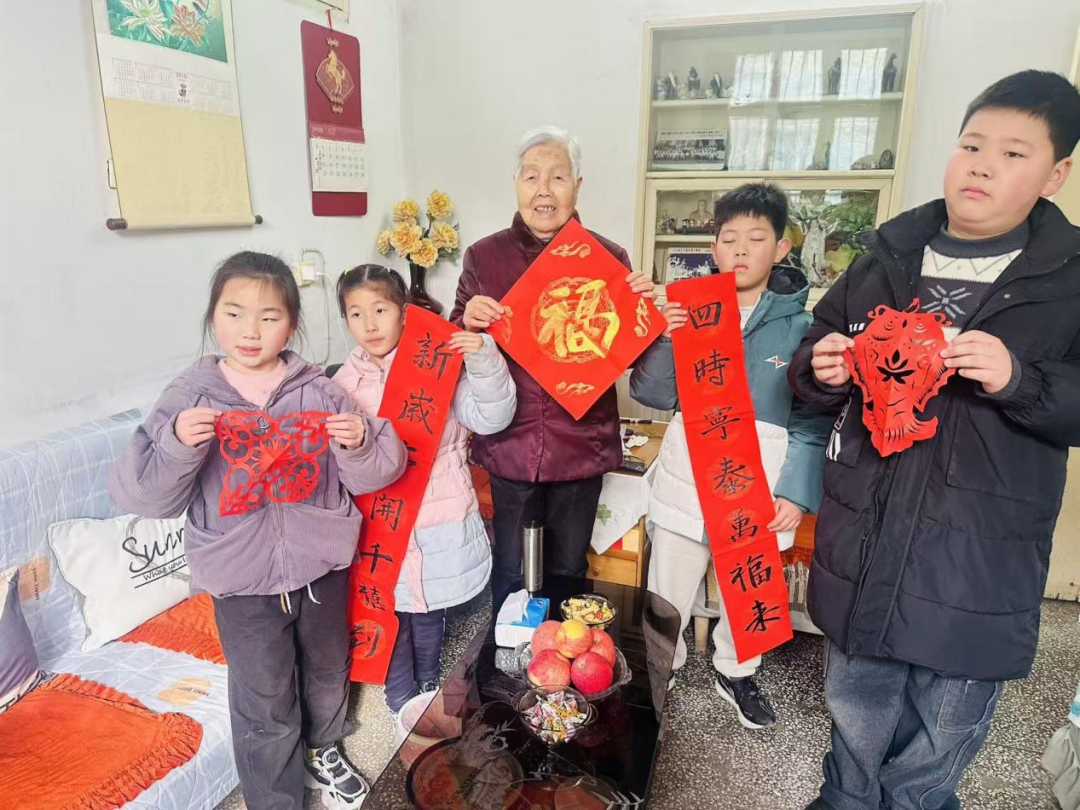 活动最后,孩子们带着亲手制作的福字、窗花,向馆内老人送上新春祝福,一件件精美的作品,不仅传递了新春的喜悦,更体现了尊老敬老的优良传统和纯真童心的温暖力量,形成了老少同乐、温情互动的感人画面。
