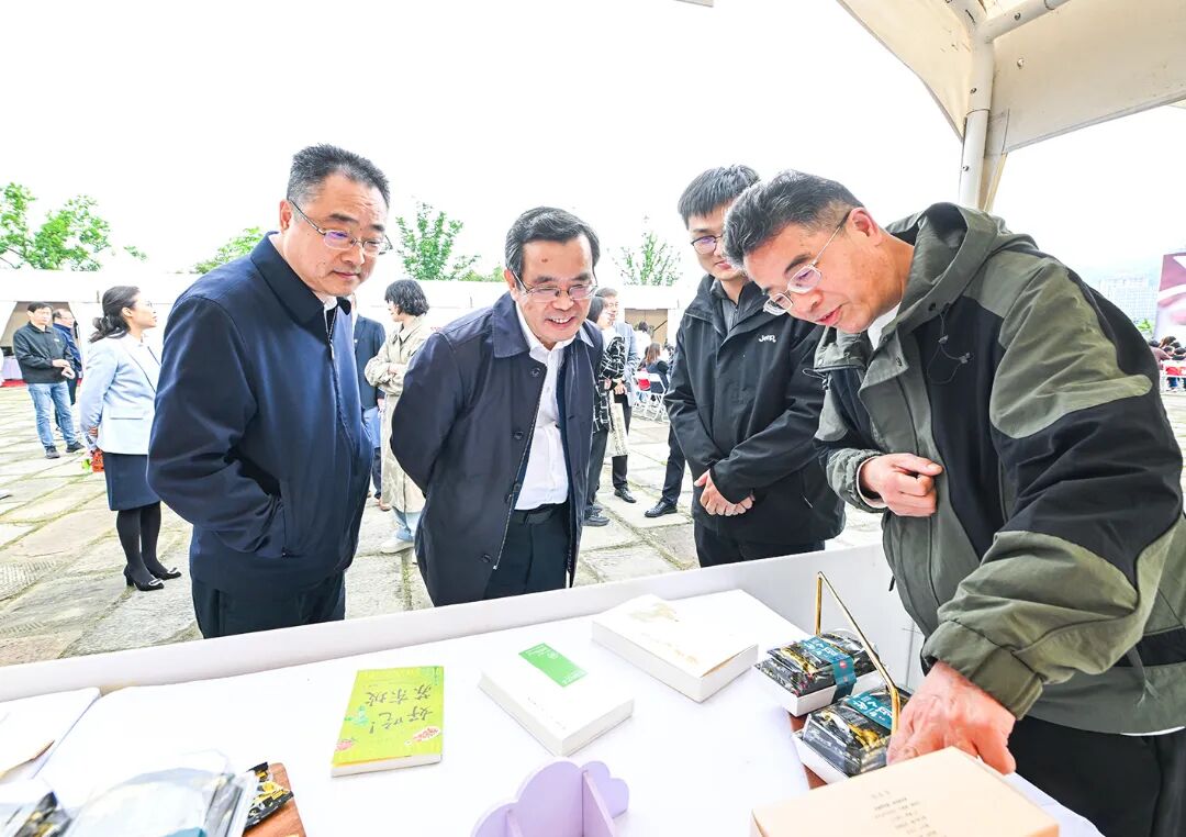 启动式后,与会嘉宾与湖北理工学院大学生一同观摩了书展现场。