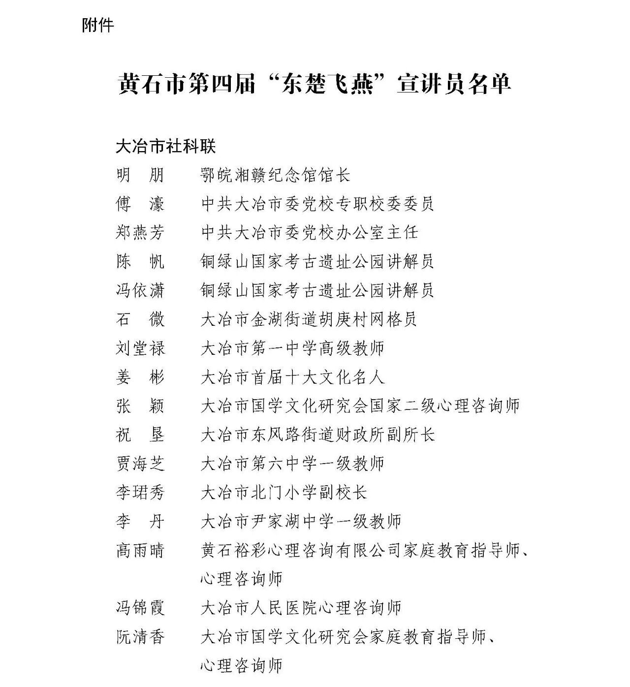官宣!黄石市第四届 “东楚飞燕” 宣讲员名单公布