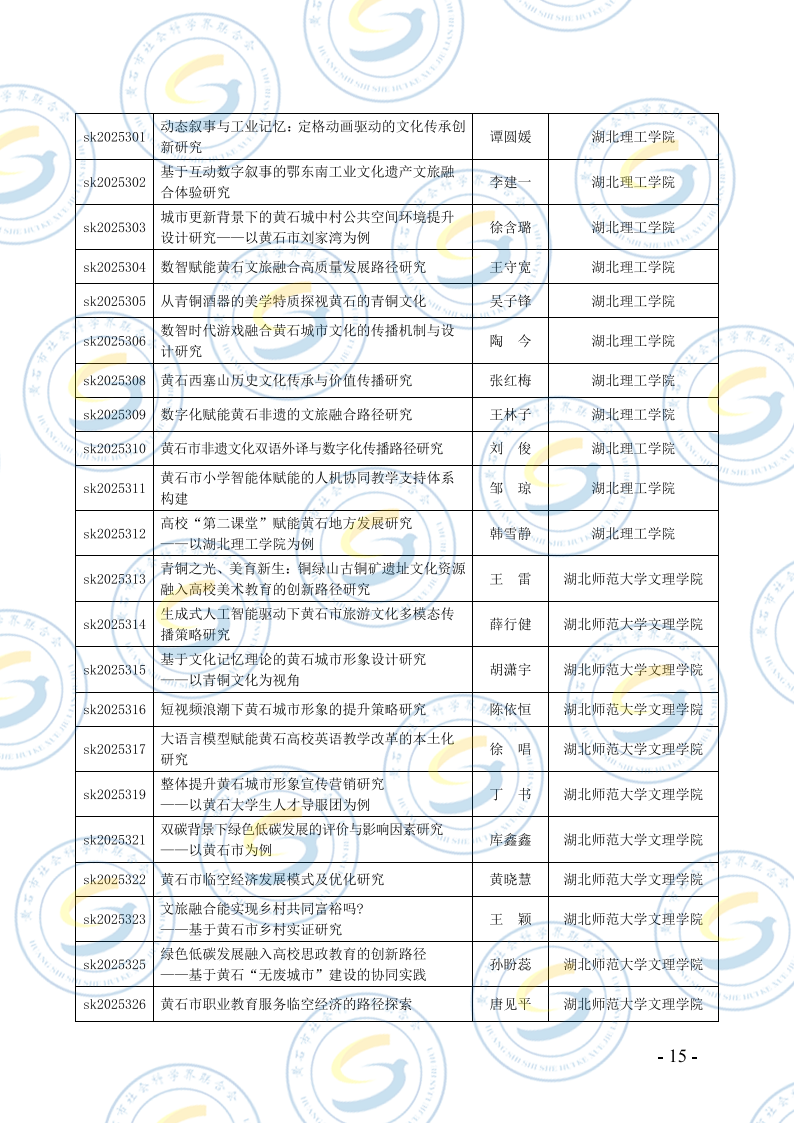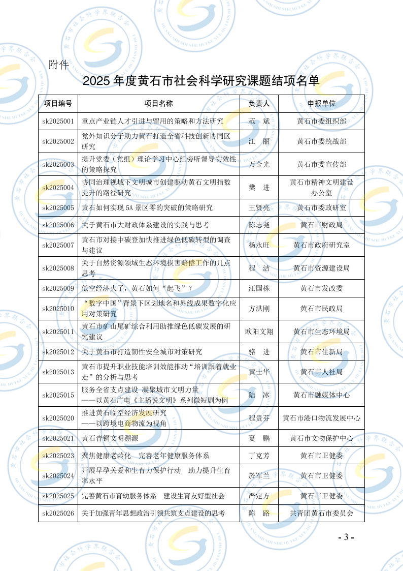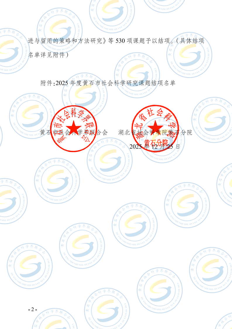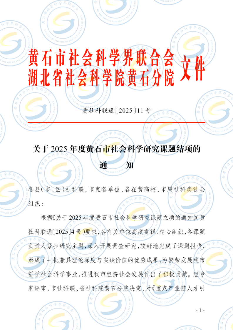 关于2025年度黄石市社会科学研究课题结项的通知