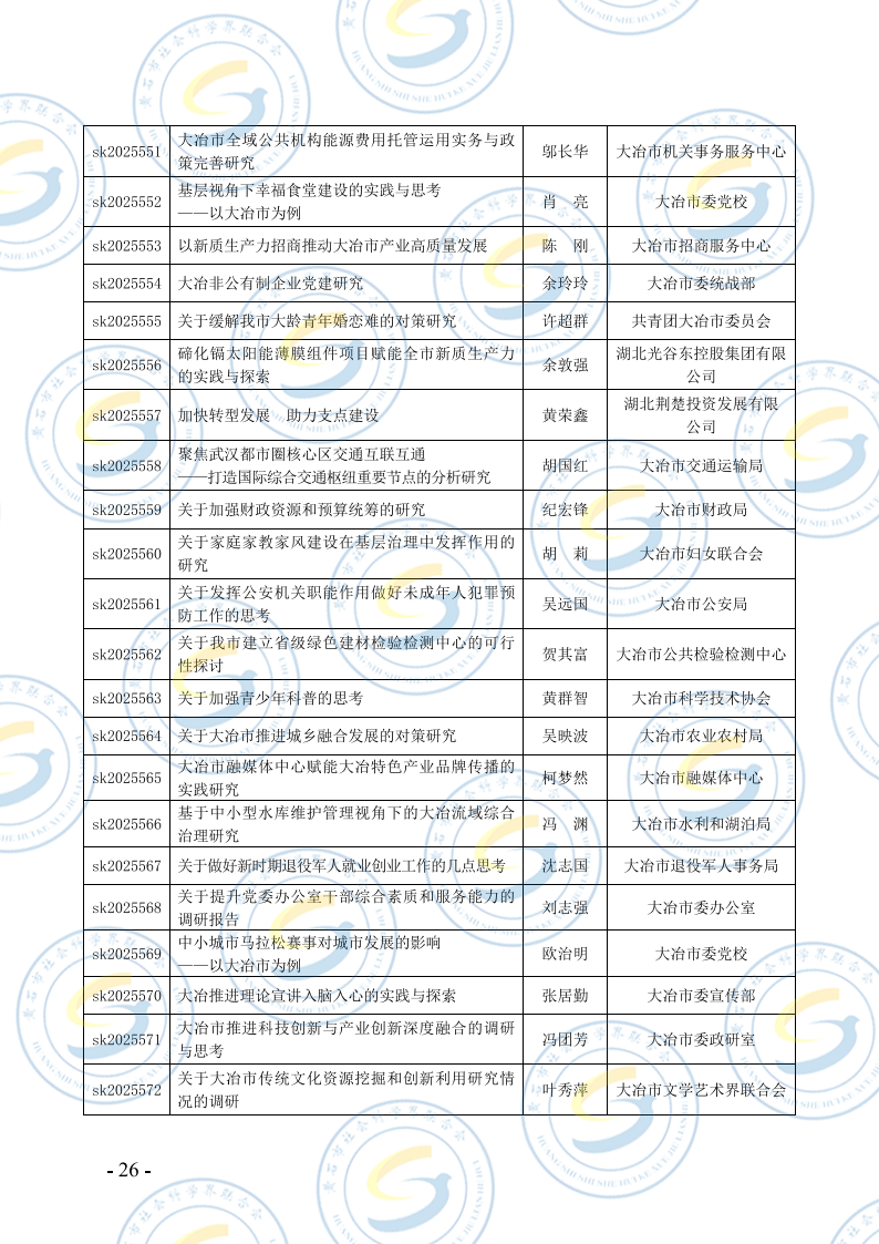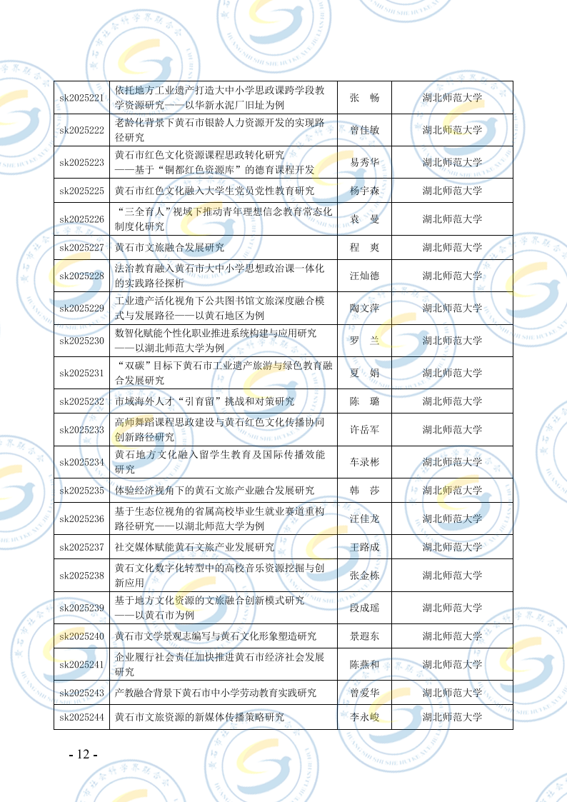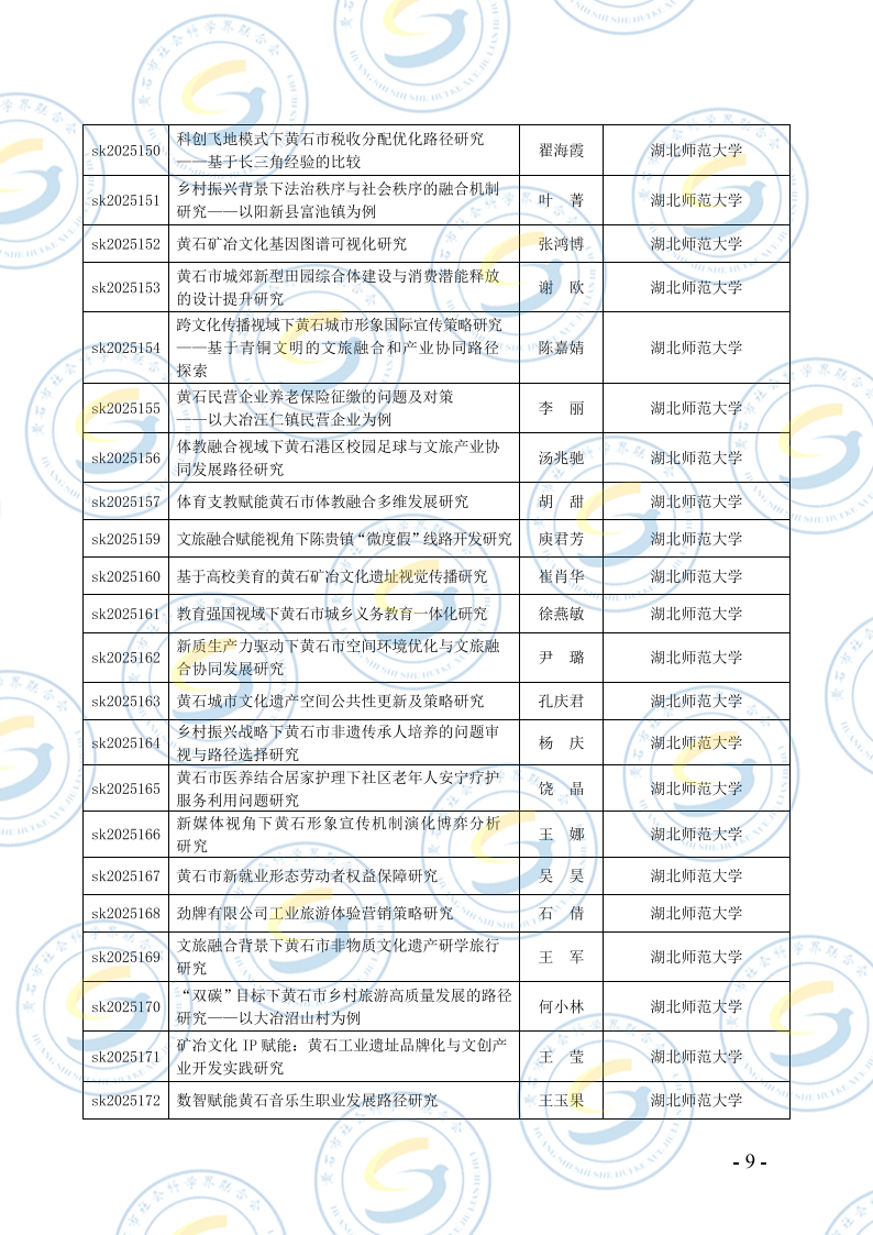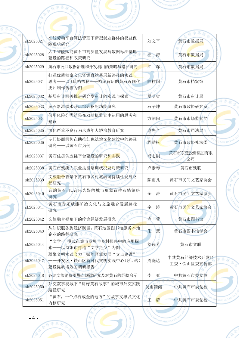 关于2025年度黄石市社会科学研究课题结项的通知