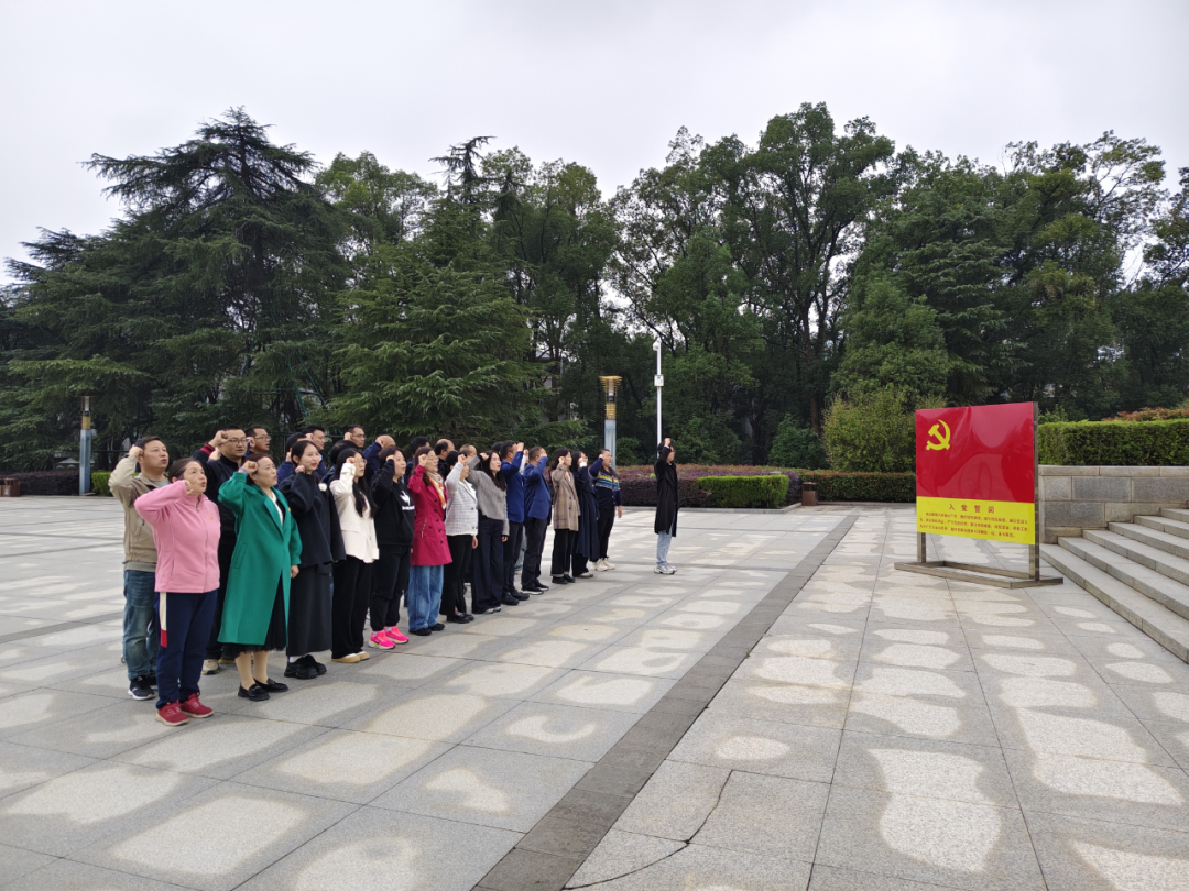 作为国务院认定的“全国重点烈士纪念建筑物保护单位”、民政部命名的“爱国主义教育基地”、湖北省政府指定的“国防教育基地”及国家AAA级旅游景区,这里早已成为传承红色基因的重要阵地。当日上午9时30分,在肃穆的氛围中,有色中学党员整齐列队,面向党旗高举右拳,重温入党誓词。铿锵有力的誓言回荡在纪念广场,既传递出“不忘初心、牢记使命”的坚定信念,也饱含着对革命先烈的崇高敬意与无尽怀念。